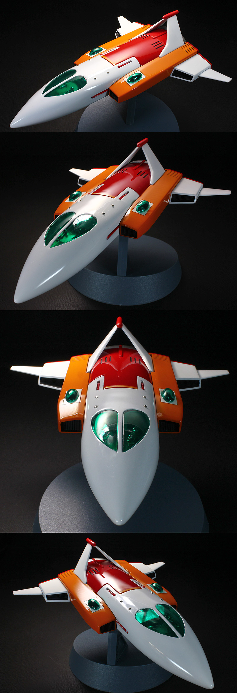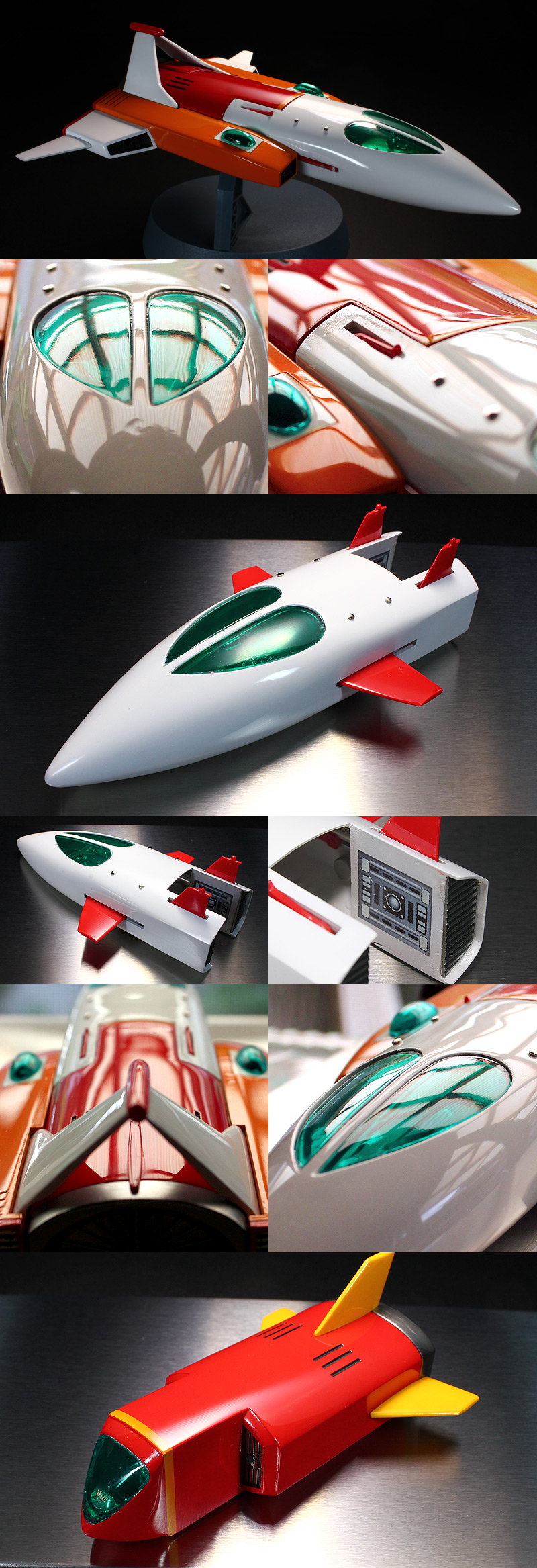 ★通算3キット目の製作なります。★ディスプレイスタンド取付けにネオジム磁石を採用。これにより機体裏側がスッキリ。★マーク03の垂直尾翼のすき間埋め★マーク03のカラーを鮮やかなオレンジに変更。★各機体のコロ部分(車輪)を取り除きました。★マーク01の翼格納ギミックの動力を輪ゴムからバネに変更。★3機合体ギミックをカンヌキ式から強力マグネットに変更。(思う存分合体&分離させて下さいw)★マーク01と03の内側に合体メカパネルシール(自作)を貼付けました。★各機体塗装後は実車もに使用するウレタンクリヤーでトップコートし、念入りに研出しました。磨き込みはコンパウンド3種(粗・細・極細)、更にセラミックコンパウンド使用後にコーティングポリマーを塗布、そしてモデリングワックスで仕上げてあります。★マーク03のミサイルギミック可動します。※非常に強力ですので注意してください。 ☆目立った汚れや破損はありません。☆研出しのあまい部分があります。☆素人の趣味の作品なので、記載しきれていない粗などがあります。 |