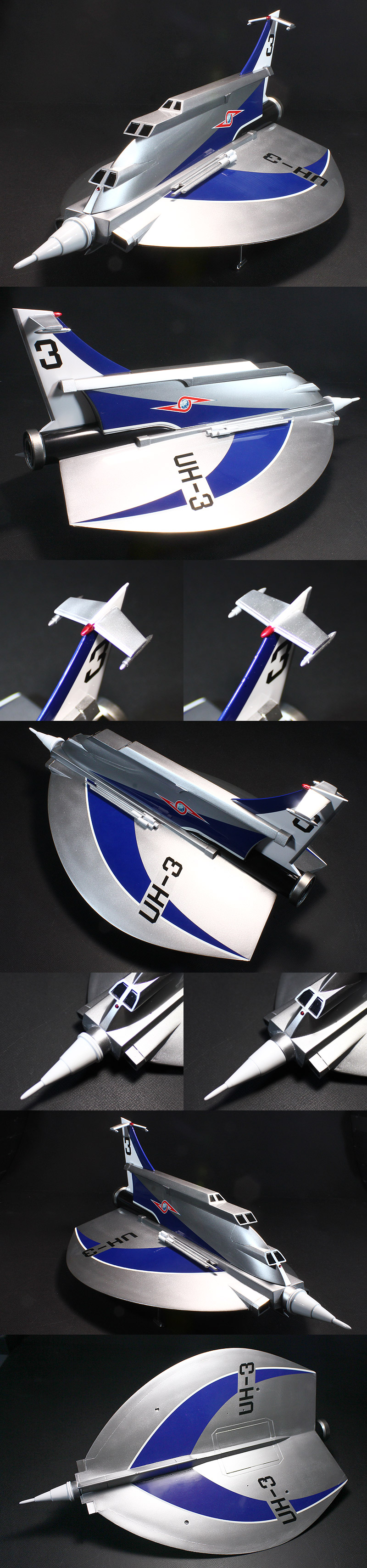 | ★フジミ製 ウルトラホーク3号 1/72 組立塗装した完成品です。★キットサイズ1/72:(約)長280mm幅170mm高130 ★付属品:元箱、組立説明書※先端パーツと尾翼パーツは各2種類付属します。 |