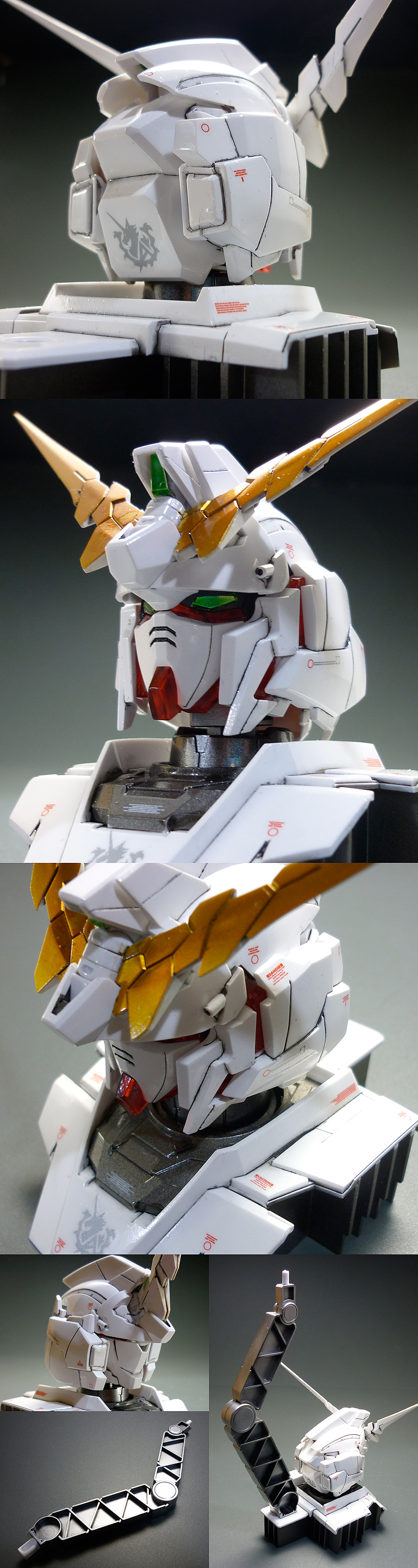 | ・電撃ホビーマガジン1月号 特別付録のユニコーンガンダムヘッドディスプレイの塗装完成品になります。 ・ユニコーン、デストロイフェイスへ変形可能です。 |