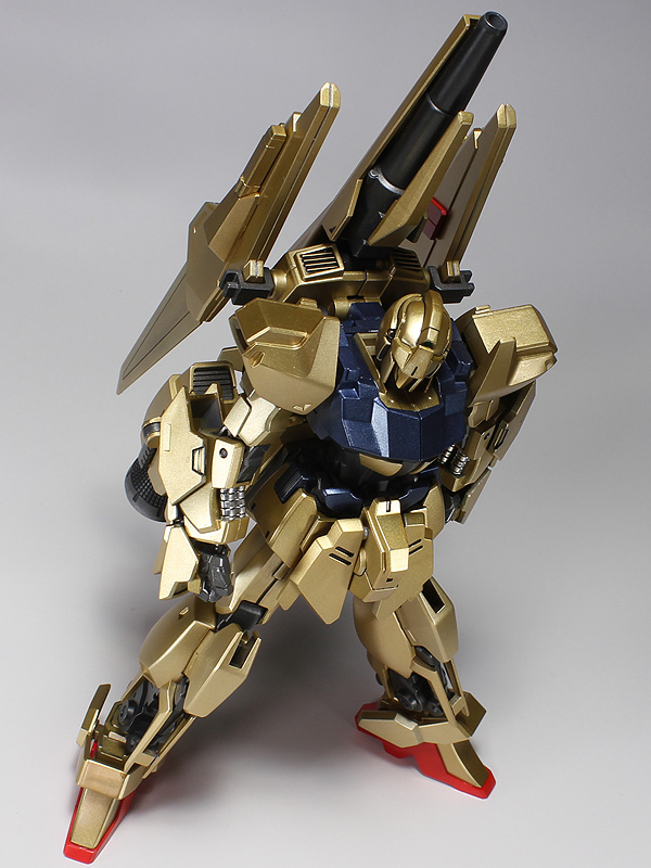 ★安定させるため足(内部)にウエイトを仕込みました。★ひざ関節のパーツの合せ目を消しました。 ★肉抜きパーツの処理をしました。★足のヒール後方にのパーツを追加して安定化をはかりました。 ★足フレームパーツにマイナスモールドを追加しました。★モールドプラ板で合わせ目を消しました。 ★ウイングなどは段落ちモールド処理をしました。★メガライダーのライディングギア内側にパーツを追加しました。 ★バーニア2重構造にしました。★目にはメタリックレッドのラピーをカットして貼り付ました。 ★装甲はガイヤのブライトゴールドで塗装。★バストはブルーメタリックにブラックなどを調色。 ★フレームや武器などはグラファイトブラックです。★動力パイプはメッキシルバーNEXT。 ★エナメル塗料でスミ入れ。★セミグロスクリヤーでオーバーコートしました。