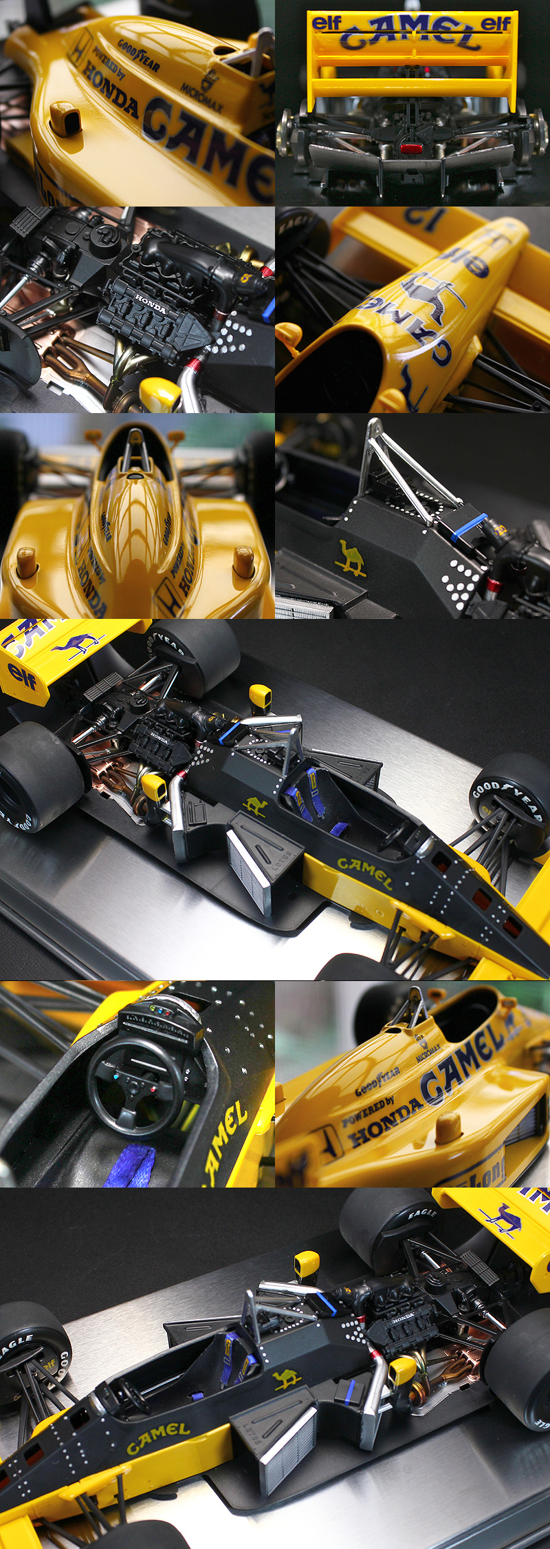 | ★タミヤ製プラスチックキットの完成品です。★キットサイズ1/20(約)長210mm、幅110mm、高50mm ★1987年のF1グランプリで活躍したマシンです。★ドライバーはアイルトン・セナと中嶋悟。★A.セナがモナコGPとデトロイトGPに2連勝、この年から初のF1レギュラードライバーとなった中嶋もイギリスGPで4位に食い込むなど、性能の高さを示したのです。 ★付属品:元箱、組立説明書 ※撮影のための台座(金属)は付属しません。 |