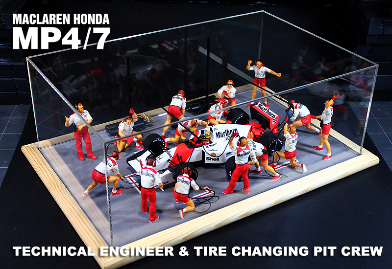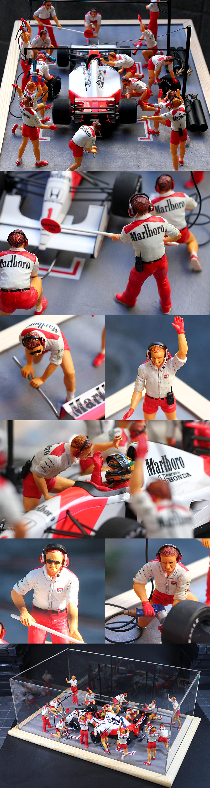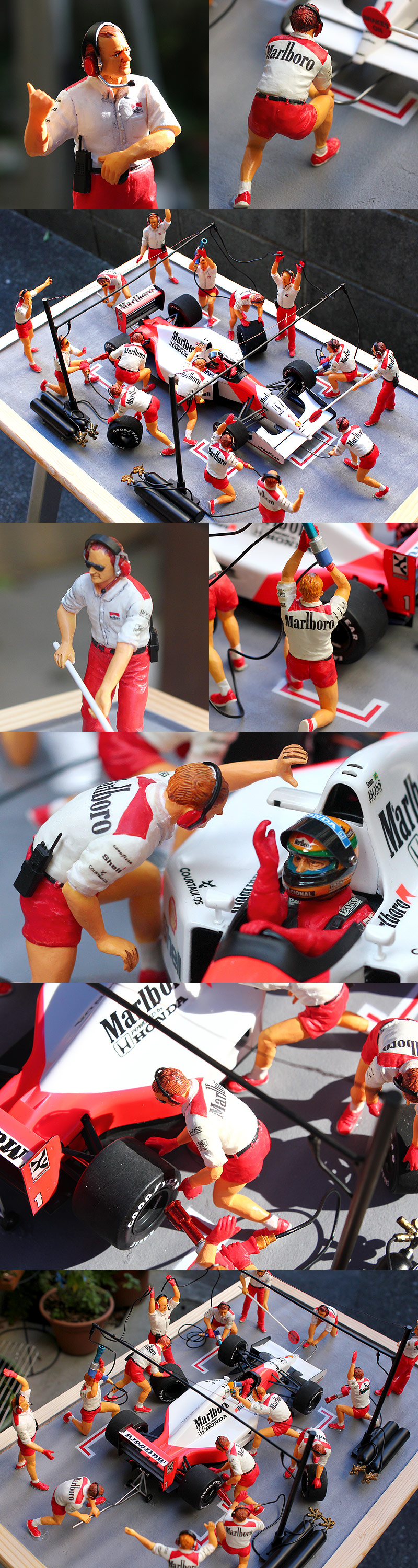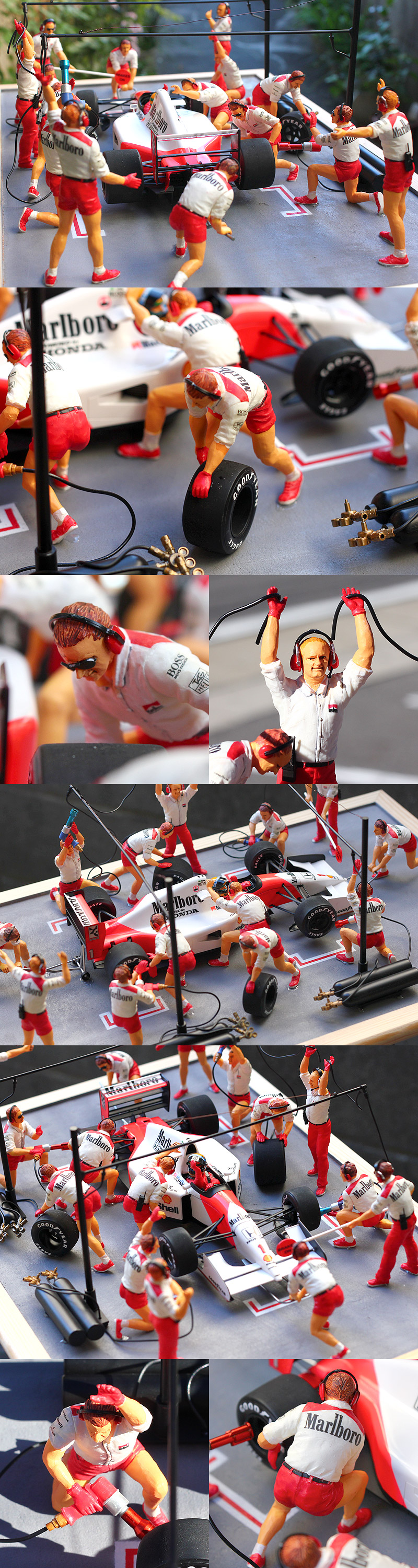 ★タイヤチェンジピットクルーキット(7名)を2セット使い手足や顔を付け替えてポーズを変えて14名製作。 |