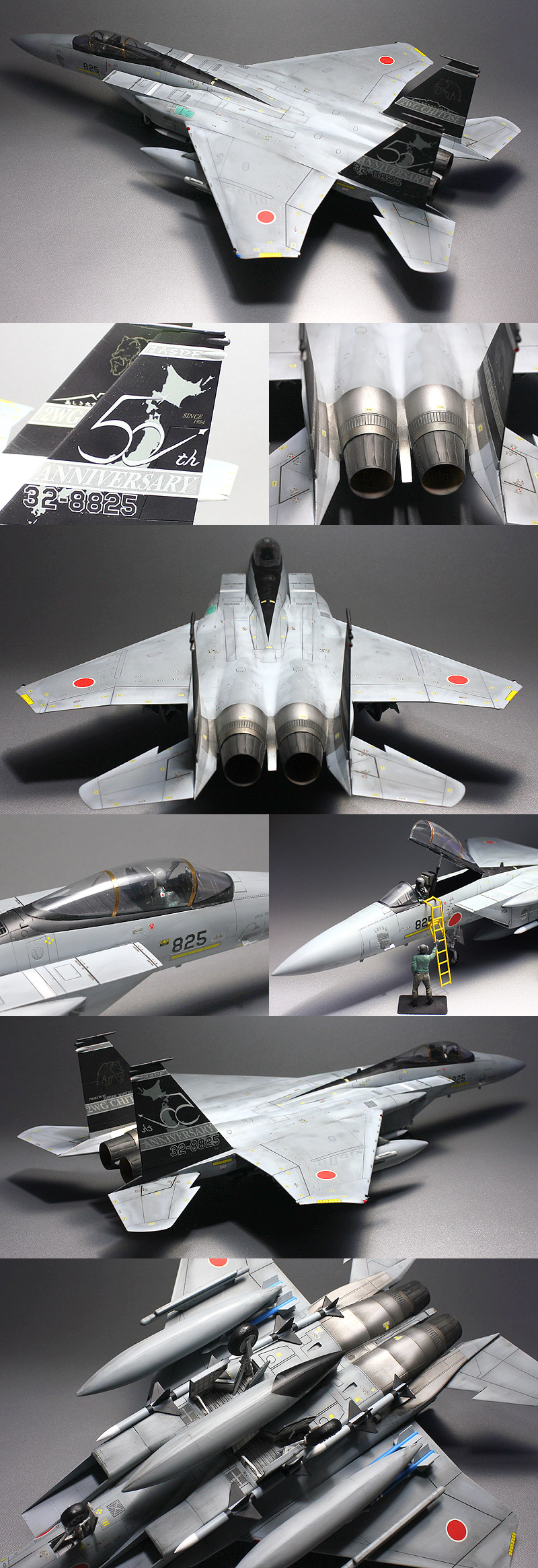 ★フジミ1/48 F-15J イーグル 航空自衛隊 千歳基地 第203飛行隊 自衛隊創立50周年記念塗装機 ★フジミ製のプラスチックキットを組立塗装した完成品です。 ★キットサイズ(約mm):長410×幅280×高130。 ★付属品:組立説明書、ハシゴ、誘導員、キャノピーポール