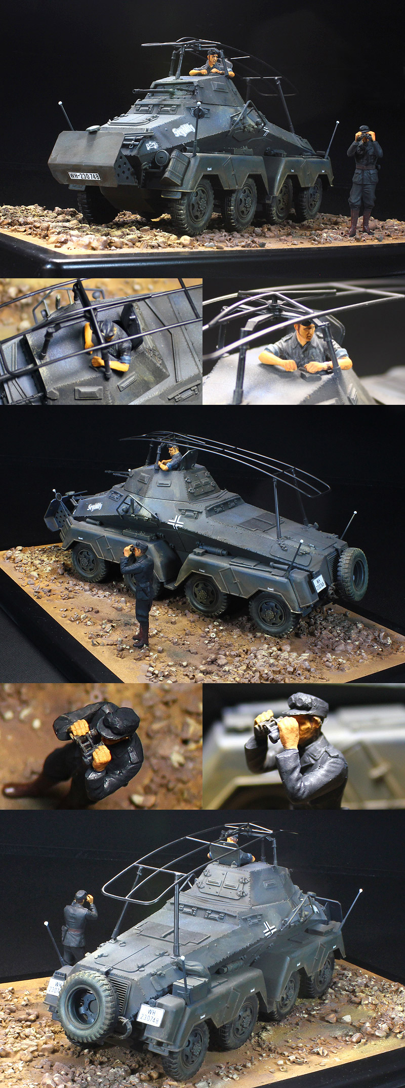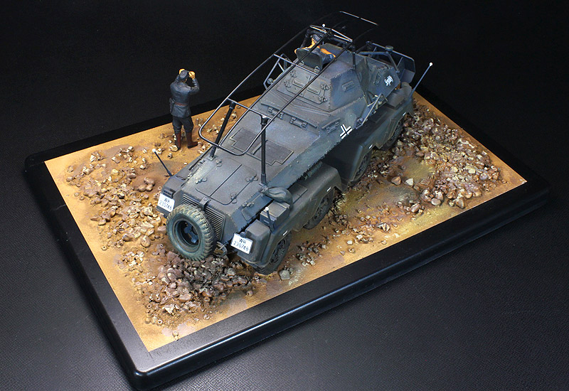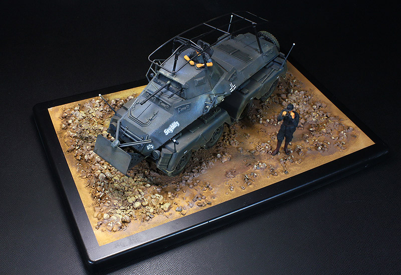 | ★タミヤ製のプラスチックキットを組立塗装した完成品です。★キット全サイズ(約)長260✕幅170✕高110 ★台座:ガレ場地面をイメージしたヴィネット仕立て(車両及びフィギュアは固定していません) |